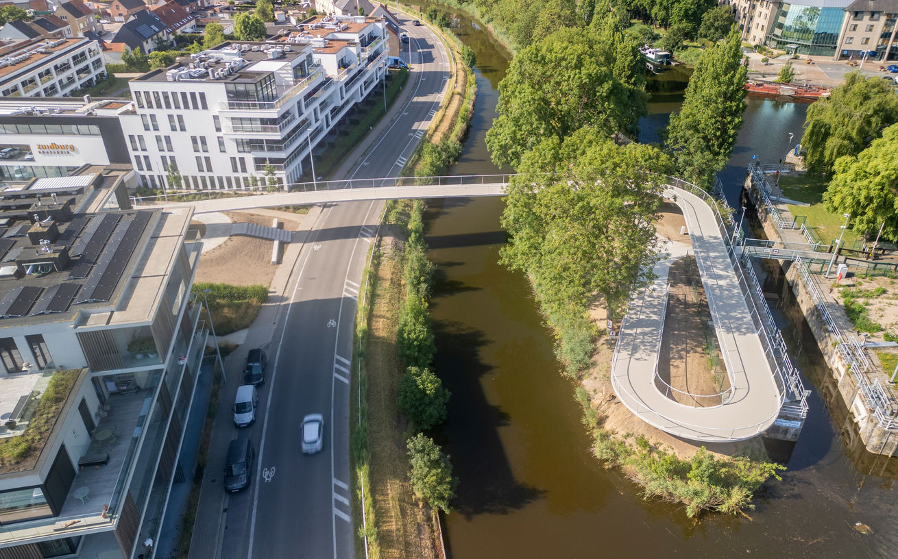Bouwen van een fiets- en voetgangersbrug over de Nederschelde.